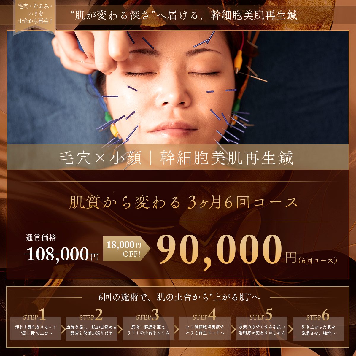 看護師資格を保有する美楽鍼のセラピストが、安全に鍼アプローチを行います。経絡やツボを刺激することで、血液やリンパの流れを促し、お肌の引き締めやリフトアップ効果が期待できます。