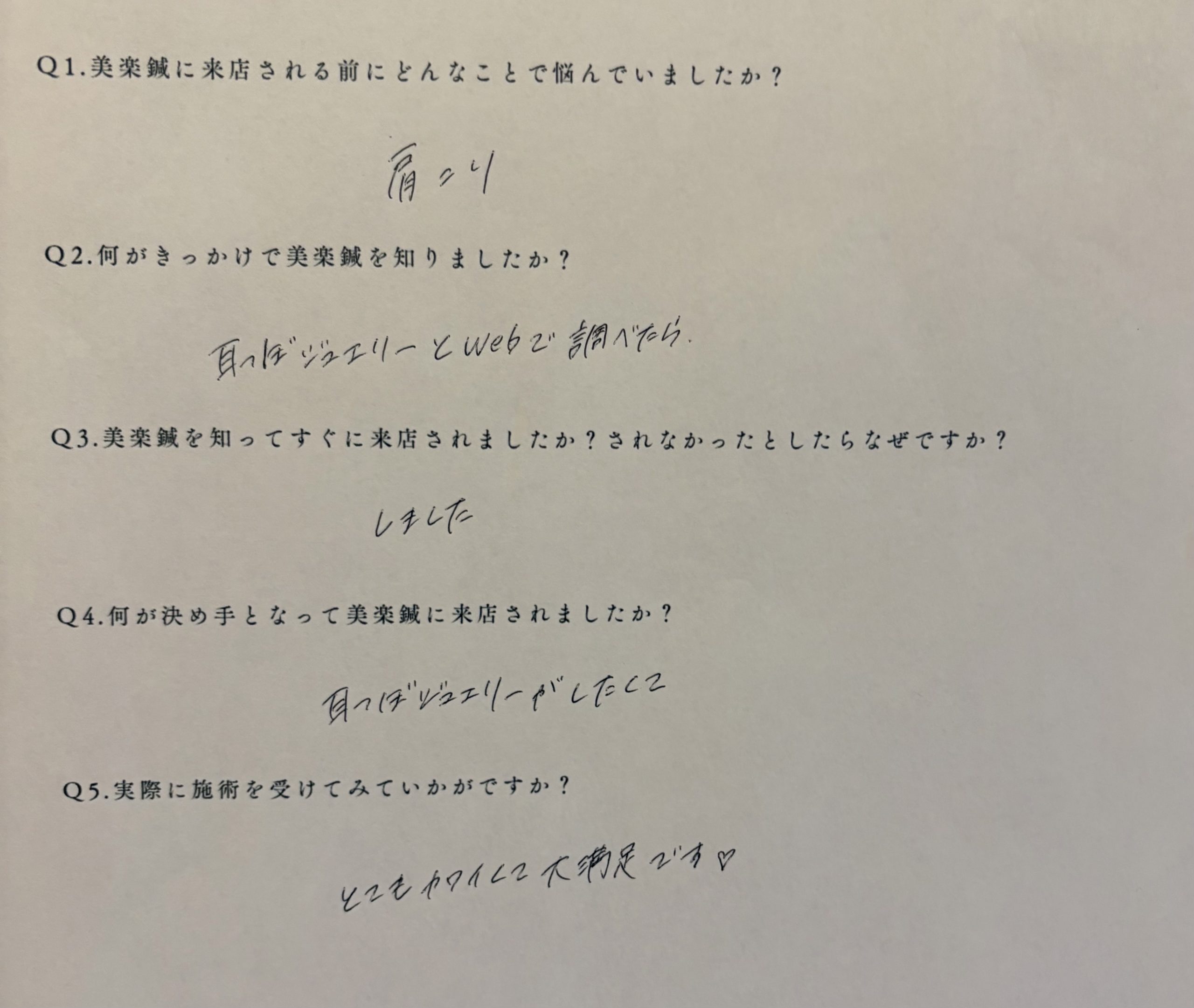 肩こりのお悩みをきっかけに、美楽鍼を見つけてくださり、耳ツボジュエリーにご興味を持ってご来店いただけたことを大変嬉しく思います。